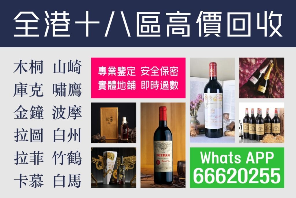 回收名莊紅酒 全港免費上門回收紅酒,歡迎咨詢紅酒價格、 拉菲Lafita,武當Monton,瑪歌Margaux,帕圖斯Petrus,羅曼尼康帝Romannee Conti、Lateche、Richebourg、免費上門、搬運~ 酒 聯繫WhatsApp 免費報價 香港實體店高價回收紅酒,收購紅酒,免費上門回收紅酒: 拉菲 木桐 帕翠 羅曼尼康帝紅酒 回收各種紅酒Romanee-Conti 拉菲(Lafite) 木桐(Mouton)瑪歌(Margaux)拉圖(Latour)柏圖斯(Petrus),奧鬆(Ausone), 白馬(Cheva Blanc),奧比昂(Haut-Brion)裏鵬( Le Pin)作品一號(Opus One) 嘯鷹(Screaming Eagle)奔富Penfolds,三十年老字號,信譽第一,Both Hong Kong and Macau offer door-to-door recycling services for wine,Cash transactions 咨詢熱綫 WhatsApp:+852-66620255 √精準報價,絕無虛價: 基於即時市場行情,提供透明且清晰的估價,過程專業可查。 √全港速達,免費上門: 香港18區均可安排上門收酒,時間由您定,我們準時抵達。 √現金即付,安全保密: 驗酒完成後立即以現金或即時轉帳支付,快速交收。 √聯絡我們,快速變現 WhatsApp直接發送酒標照片,我們將在30分鐘內回覆初步估價。 支援24小時留言諮詢,工作日即日安排上門。即日安排上門。 回收各類閒置舊酒 +852-66620255 回收五大酒莊紅酒/世界名莊紅酒 回收帕圖斯 回收拉菲 回收木桐 回收白馬 回收瑪歌 回收勒樺 回收DRC羅曼尼康帝酒莊紅酒 我們回收 DRC 羅曼尼康帝特級園紅酒 的各種名酒,包括: ■ Romanée-Conti(羅曼尼康帝) ■ La Tâche(拉塔希) ■ Richebourg(裡奇堡) ■ Romanée-St-Vivant(聖維旺) ■ Grands Échézeaux(大依瑟索) ■ Échézeaux(依瑟索) ■ Montrachet(蒙哈榭) 咨詢WhatsApp:852-66620255 回收羅馬尼康帝 回收拉菲Lafite 回收帕圖斯Petrus 回收木桐Mouton 回收拉圖Latour 回收瑪歌 勒樺Leroy 回收侯伯王 回收奔富 諮詢回收红酒 超人洋行 - 專業回收各類名酒陳年老酒 回收红酒 回收白蘭地 回收香檳 回收輕井澤 回收飛天茅台 回收流程
